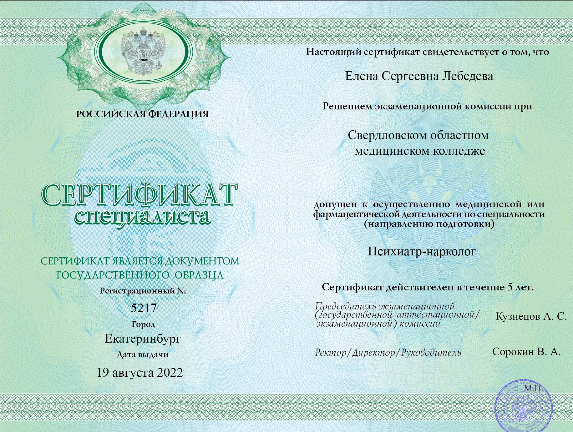 Елена Сергеевна Лебедева врач нарколог клиники доктора Стукаловой в Марковой